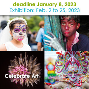 A celebration is a joyful occasion or special festivities to mark some happy event or the act of doing something enjoyable to show happiness. (To honor or praise publicly.) This month we are looking for art that speaks to the word ‘CELEBRATE’.