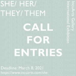 IncuArts invites women identifying and gender non-conforming artists to submit work for SHE/ HER/ THEY/ THEM– an exhibition exploring ideas related to gender and celebrating women and gender-nonconforming artists.